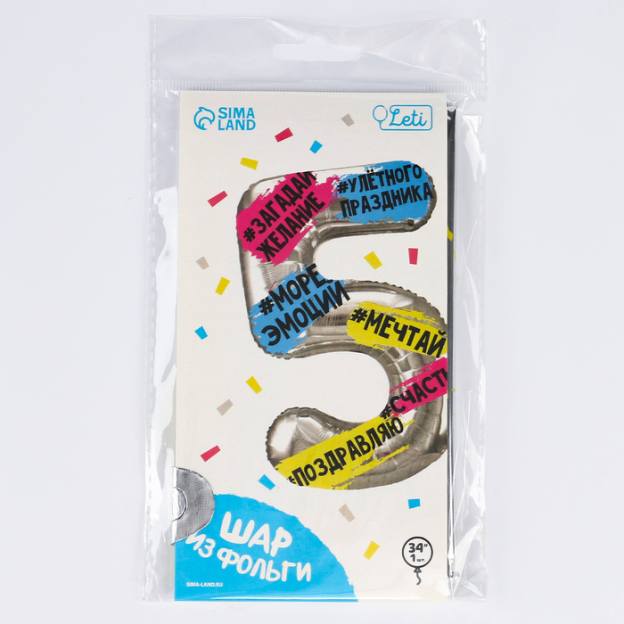 Воздушный шар фольгированный 34" «Цифра 5», с подложкой — Характеристики