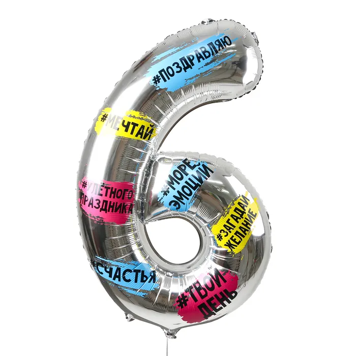 Фольгированный шар в виде цифры с хештегами — оригинальный способ поздравить с днём рождения. При необходимости, соберите число из двух шаров-цифр. Отлично подойдёт в качестве реквизита для фотосессии или оформления помещения.