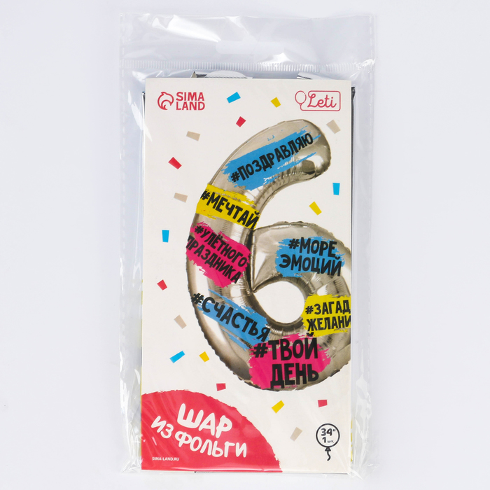 Воздушный шар фольгированный 34" «Цифра 6», с подложкой — Характеристики