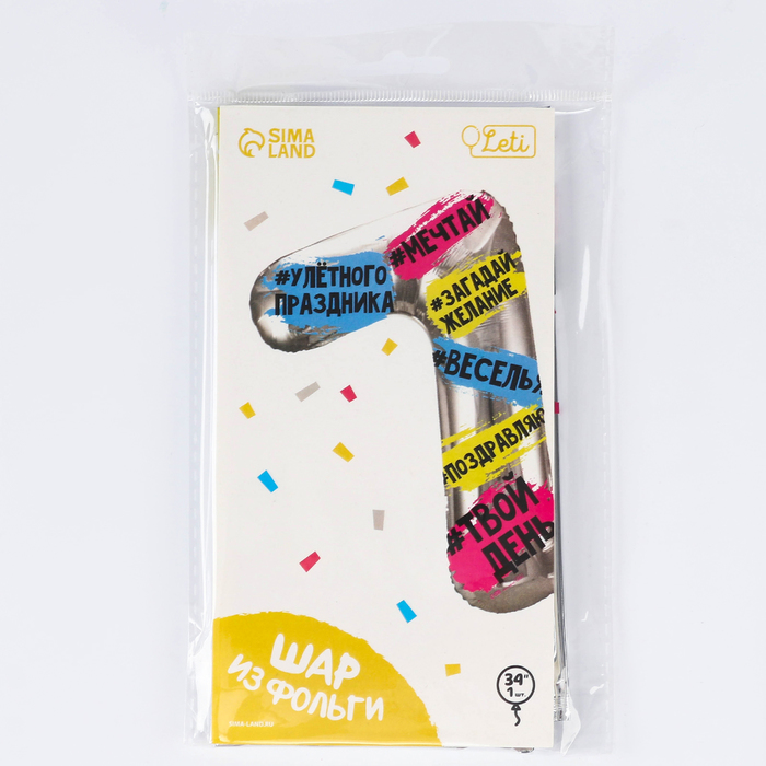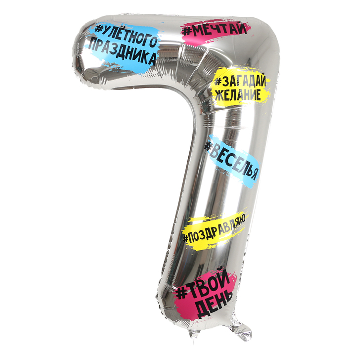 Воздушный шар фольгированный 34" Цифра 7, хештеги, с подложкой — Характеристики