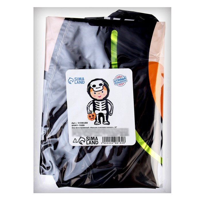 Воздушный шар фольгированный 35" «Мальчик в костюме скелета», фигура — Характеристики