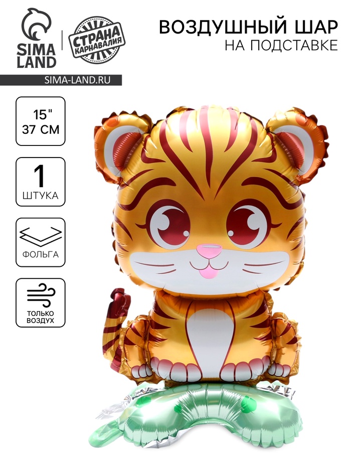 Воздушный шар фольгированный 15" «Тигрёнок», на подставке, под воздух