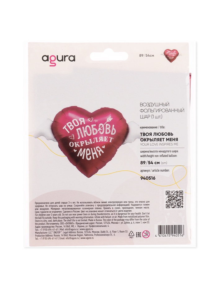 Воздушный шар фольгированный 35" «Твоя любовь окрыляет» — Характеристики