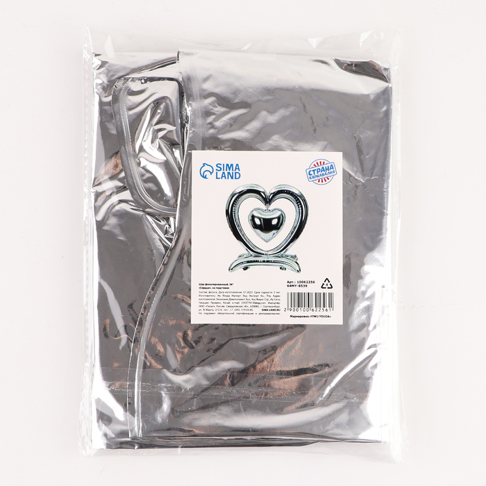 Воздушный шар фольгированный 36" «Сердце», на подставке, серебряный — Характеристики