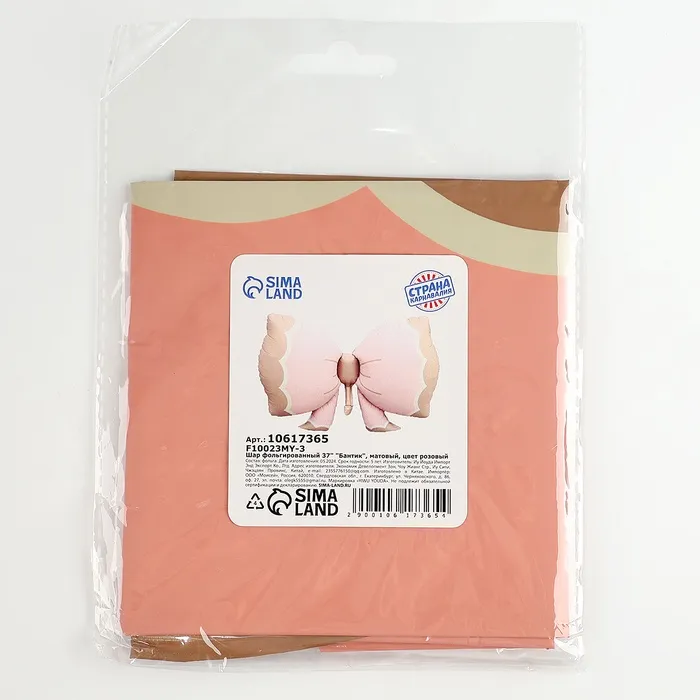 Воздушный шар фольгированный 37" «Бантик», матовый, розовый — Характеристики