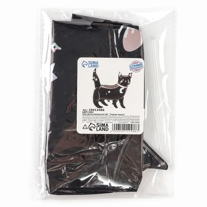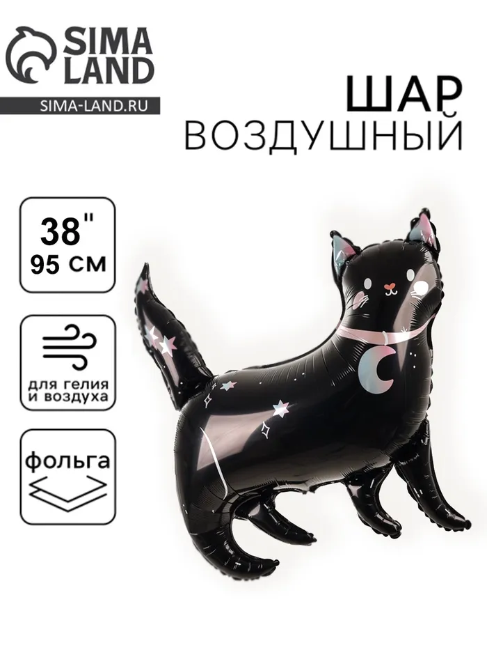 Воздушный шар фольгированный 38" «Чёрная кошка», фигура — Характеристики