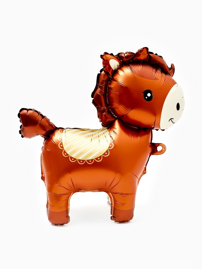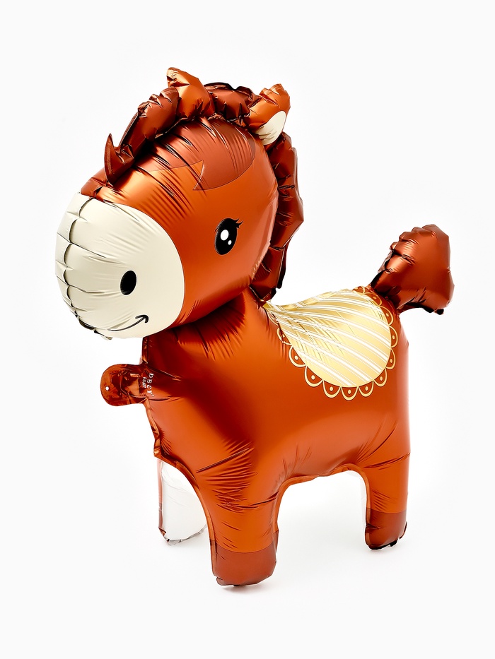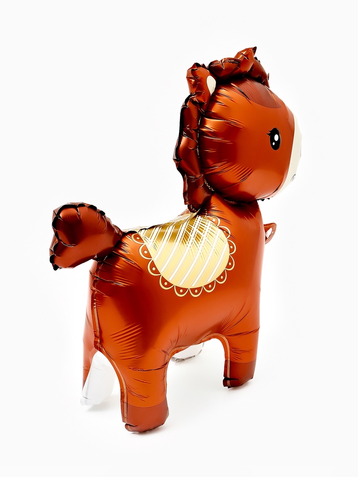 Фольгированный шар «Коричневая лошадка». Силуэт с мягкими контурами и тёплым блеском фольги создаст праздничное настроение и привлечёт внимание своим необычным дизайном. Это интересное украшение и отличный способ сделать праздник запоминающимся..