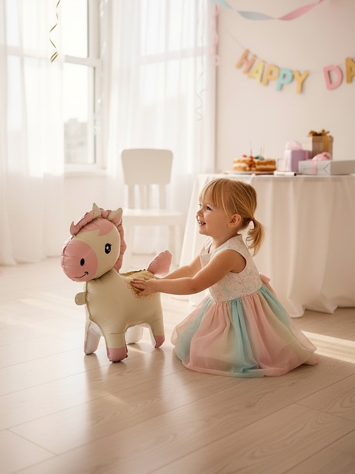 - Глянцевая поверхность не отвлекает бликами и гармонично вписывается в как яркие, так и приглушённые цветовые сценарии: от тематической вечеринки до детской фотосессии.