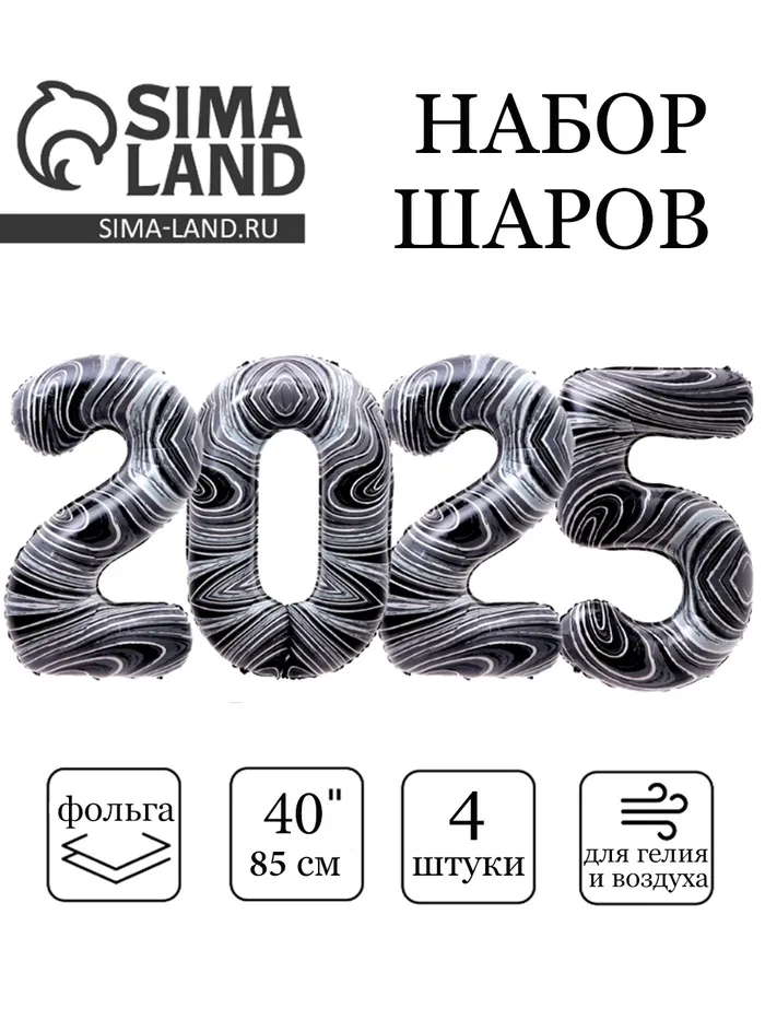 Воздушный шар фольгированный 40" «Новый год 2025», цифры, черный мрамор — Характеристики