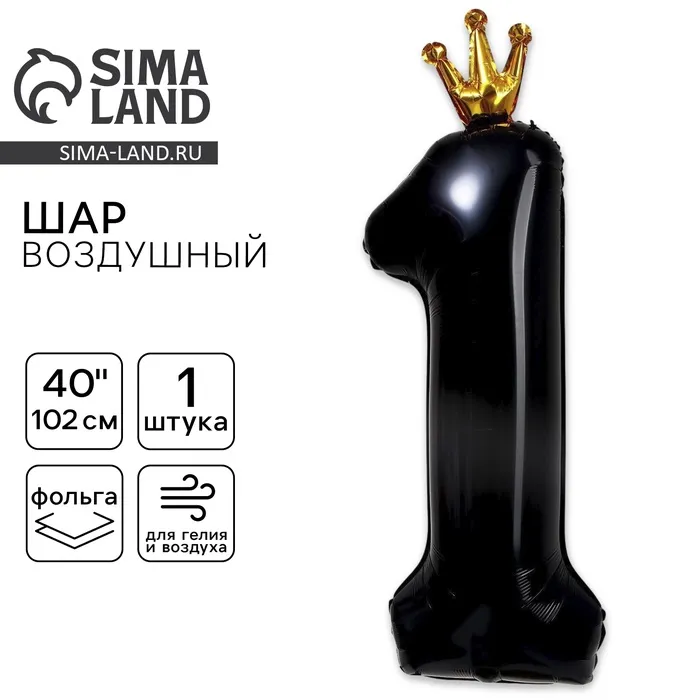 Воздушный шар фольгированный 40" «Цифра 1 с короной» — Характеристики