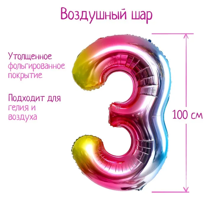 Воздушный шар фольгированный 40" «Цифра 3», градиент — Характеристики
