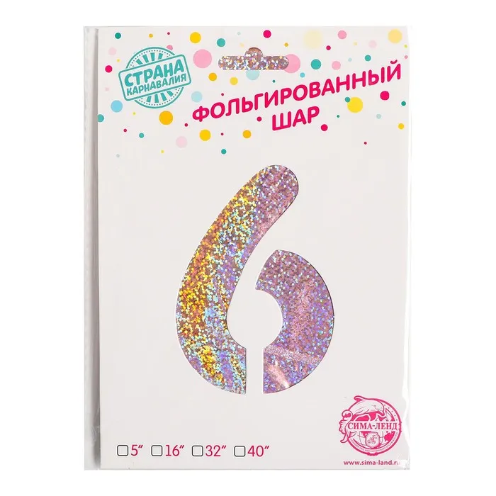 Воздушный шар фольгированный 40" «Цифра 6», голография — Характеристики