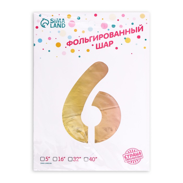 Воздушный шар фольгированный 40" «Цифра 6», градиент — Характеристики