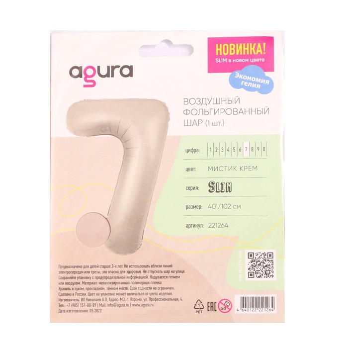 Воздушный шар фольгированный 40'' «Цифра 7», Slim, мистик крем — Характеристики