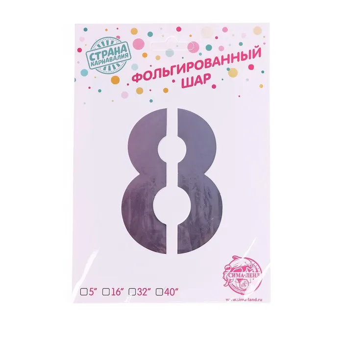 Фольгированный шар в виде цифры 8 — это отличный выбор для украшения дома на день рождения или другие значимые события. Шар можно надувать воздухом или гелием, благодаря чему он прослужат долгое время и будут радовать вас на протяжении всего вечера.