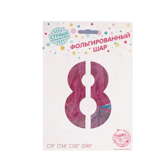 Воздушный шар фольгированный 40" «Цифра 8», на подставке, под воздух — Характеристики
