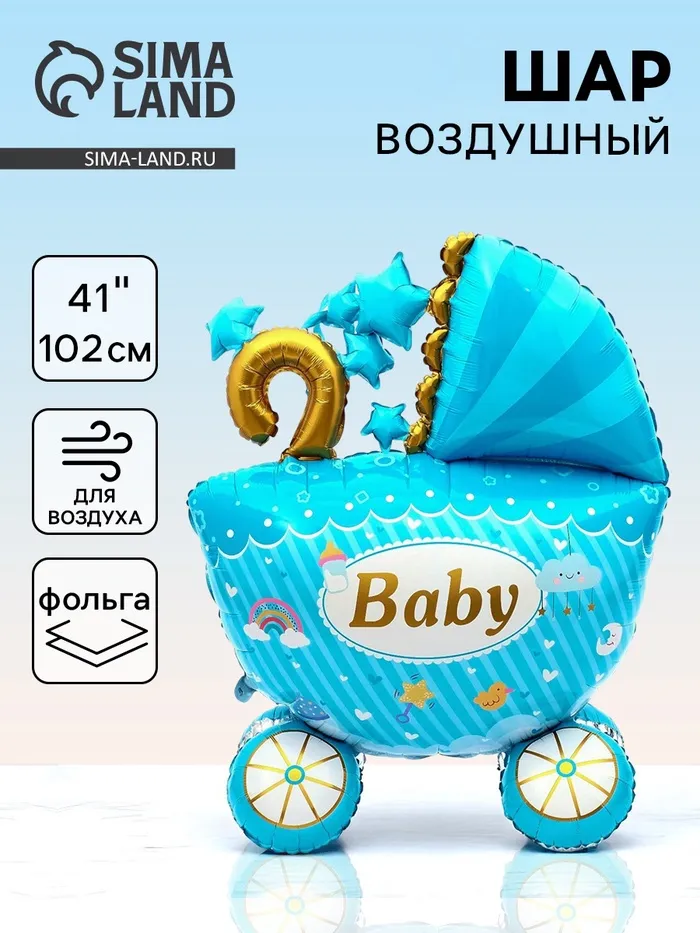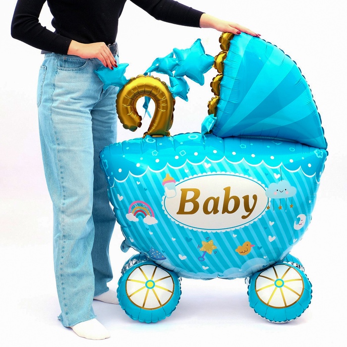 Воздушный шар фольгированный 41" «Коляска для мальчика 3D», под воздух — Характеристики