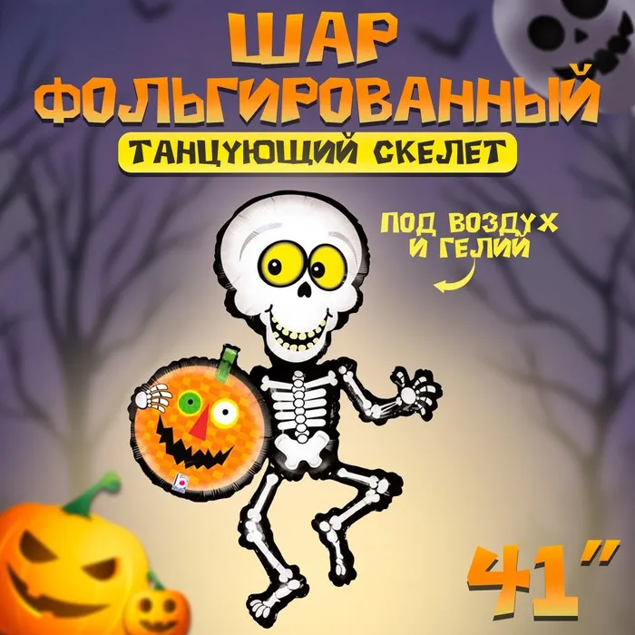Шар фольгированный 41" «Танцующий скелет» — идеальный выбор для создания атмосферы на Хэллоуин или тематическую вечеринку. Этот шар станет центральным элементом декора, подчёркивающим стиль мероприятия. Можно надувать и воздухом и гелием.