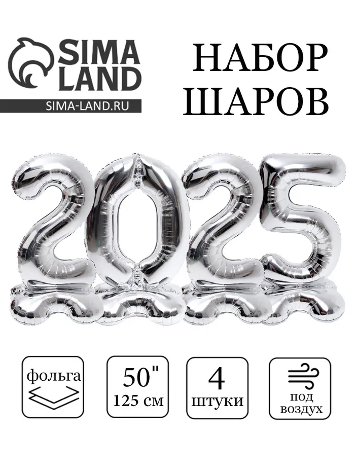 Воздушный шар фольгированный 50" «Новый год 2025», цифры на подставке, серебро — Характеристики