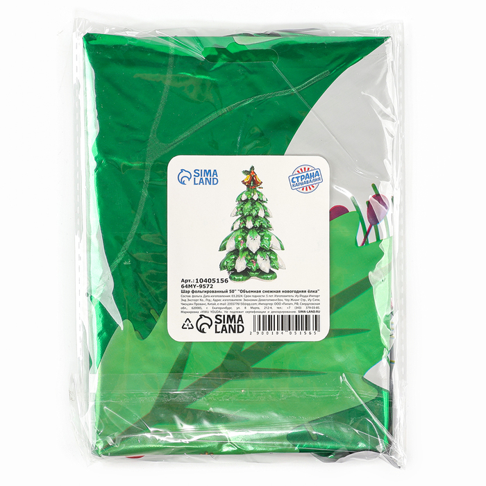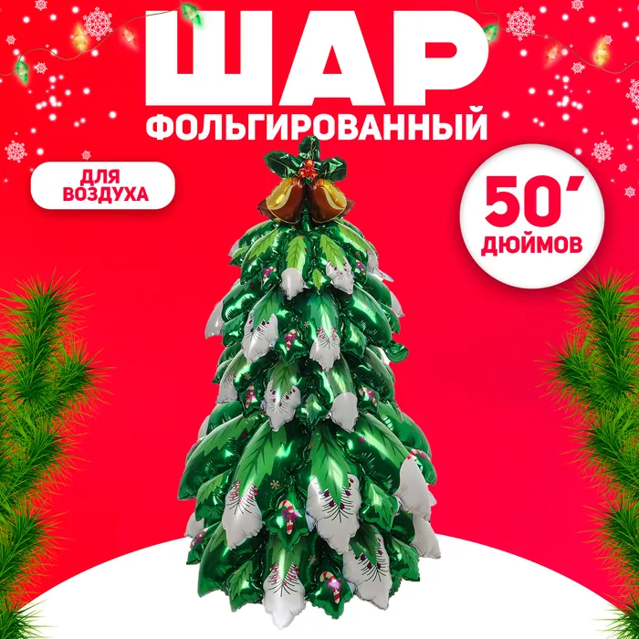Воздушный шар фольгированный 50" «Обьёмная снежная новогодняя ёлка» — Характеристики