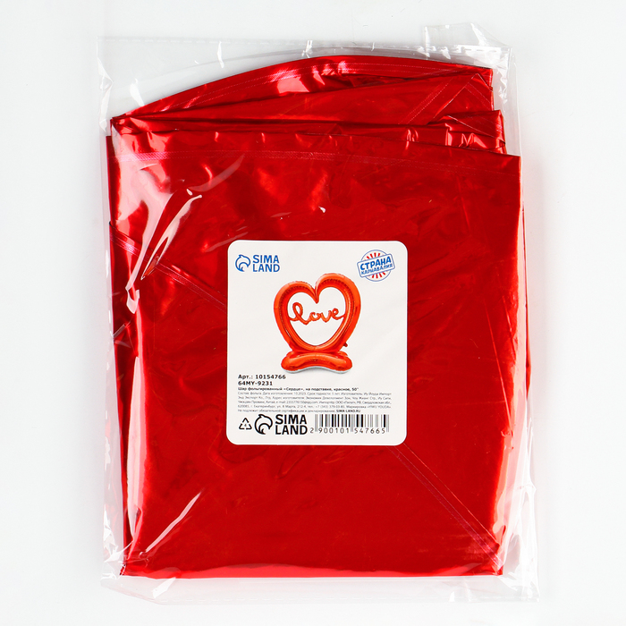 Воздушный шар фольгированный 50" «Сердце», на подставке, красное, под воздух — Характеристики