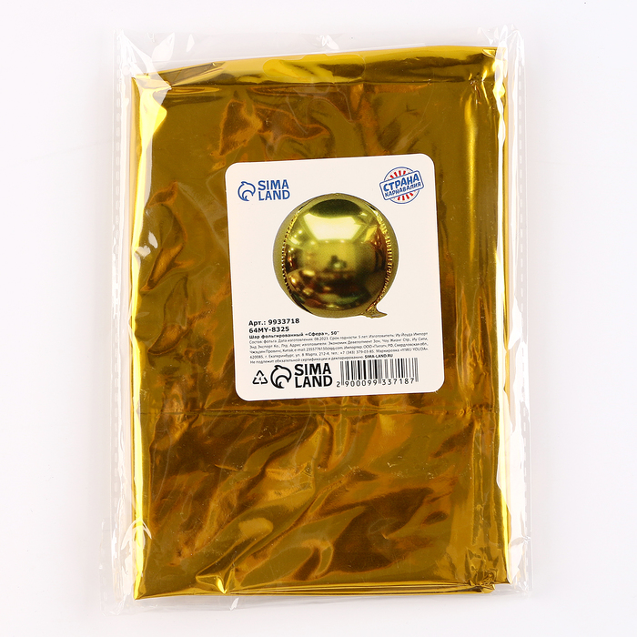 Воздушный шар фольгированный 50" «Сфера золото», под воздух — Характеристики