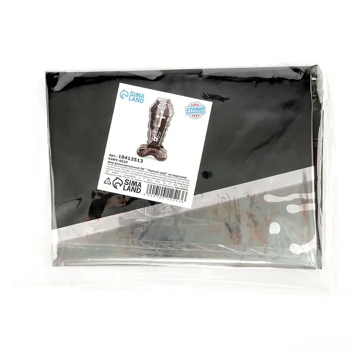 Шар фольгированный 58" «Чёрный гроб» — идеальный выбор для создания атмосферы на Хэллоуин или тематическую вечеринку. Этот шар станет центральным элементом декора, подчёркивающим мистический стиль мероприятия. Будьте внимательны: шар надувается только воздухом.