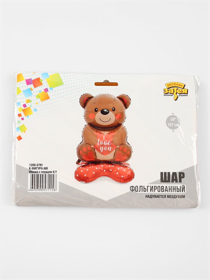 Воздушный шар фольгированный 58" «Медведь с сердцем», на подставке — Характеристики
