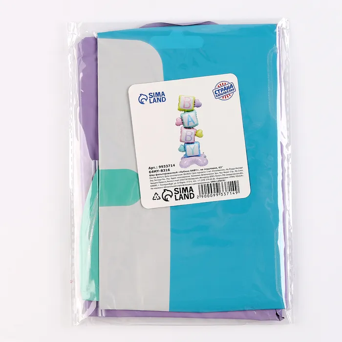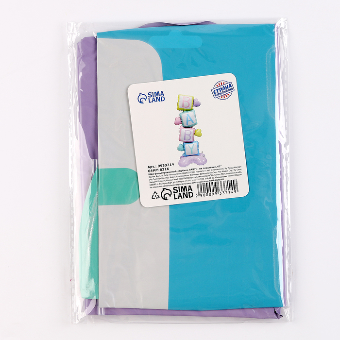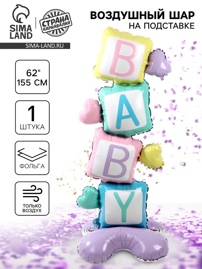 Воздушный шар фольгированный 62" «Кубики — BABY», на подставке — Характеристики