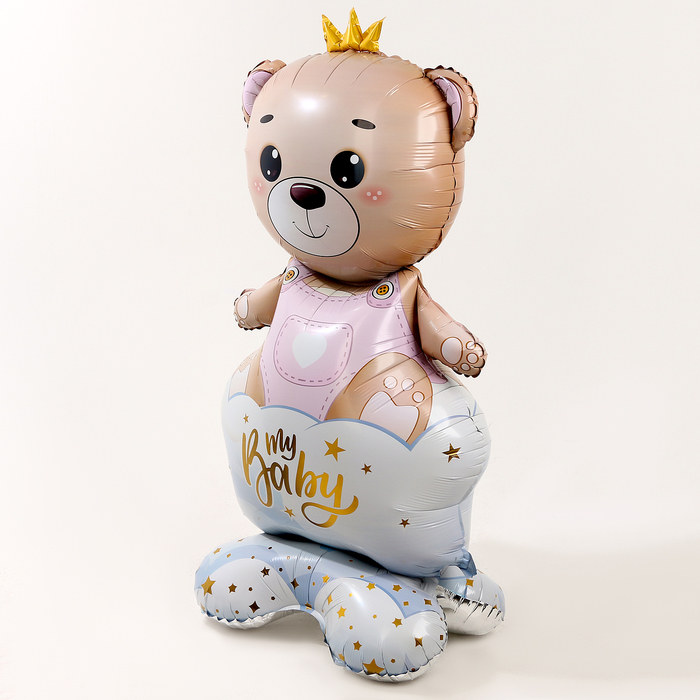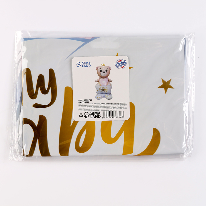 Воздушный шар фольгированный 62" «Мишка в короне — девочка», фигура, на подставке — Характеристики