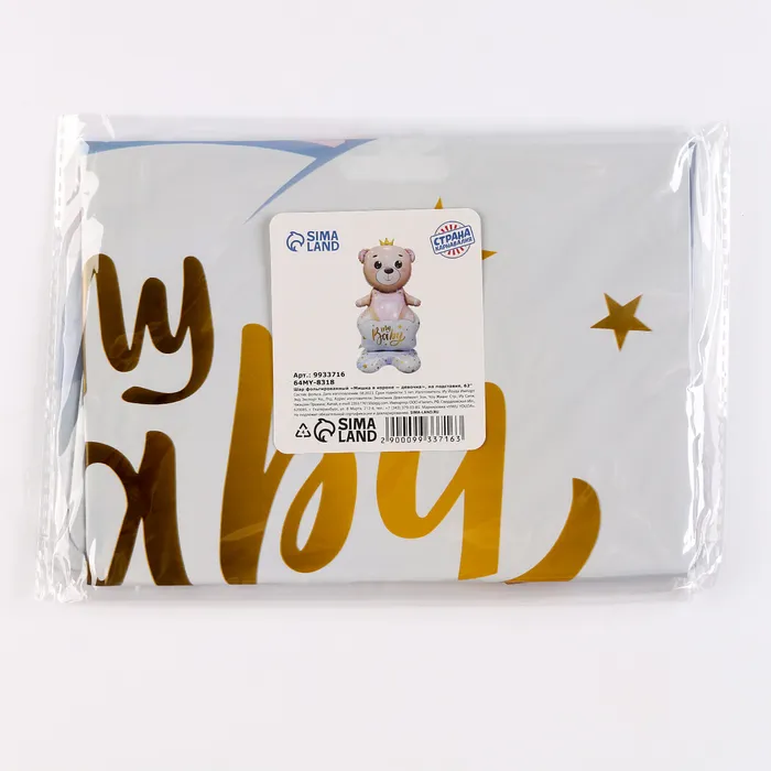 Шар «Мишка в короне — девочка» станет центральным элементом фотозоны или украшением детской вечеринки. Его стильный дизайн и большой размер понравятся как детям, так и взрослым, создавая запоминающийся акцент на празднике и добавляя сказочной атмосферы.