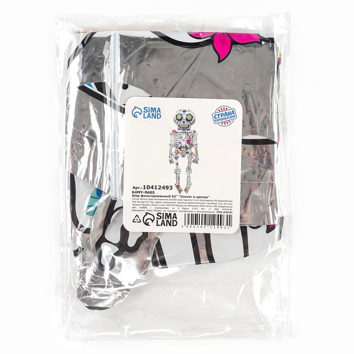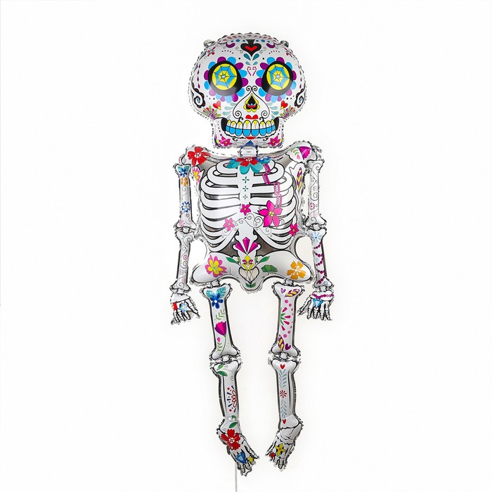 Воздушный шар фольгированный 62" «Скелет в цветах», фигура, под воздух — Характеристики