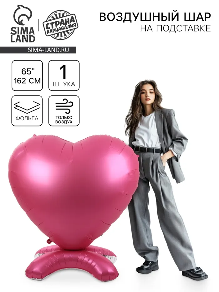 Воздушный шар фольгированный 65" «Сердце гигант», на подставке, розовый — Характеристики