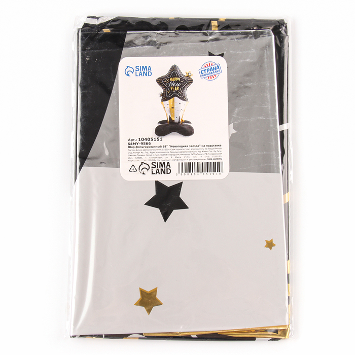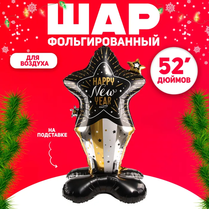 Воздушный шар фольгированный 68" «Новогодняя звезда», на подставке — Характеристики