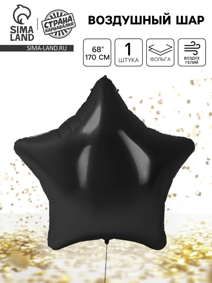 Воздушный шар фольгированный 68" «Звезда гигант», чёрный — Характеристики