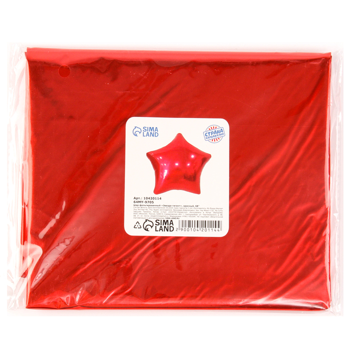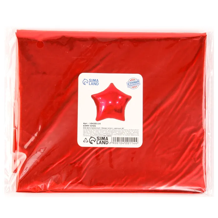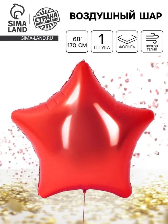 Воздушный шар фольгированный 68" «Звезда гигант», красный — Характеристики