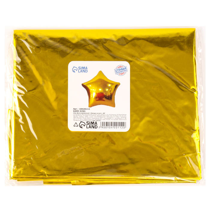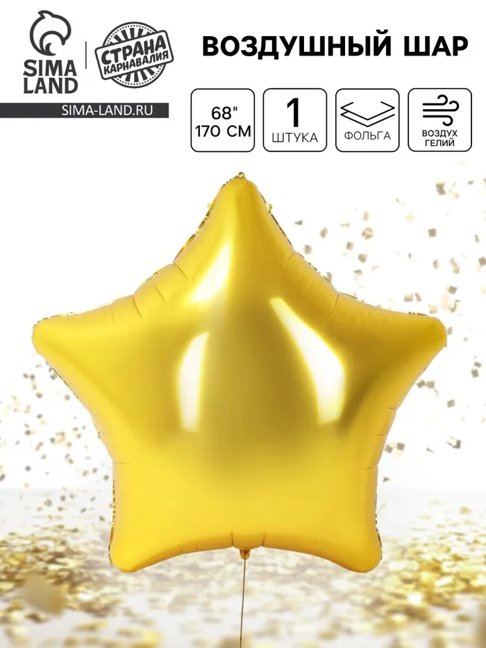 Воздушный шар фольгированный 68" «Звезда гигант», золотой — Характеристики