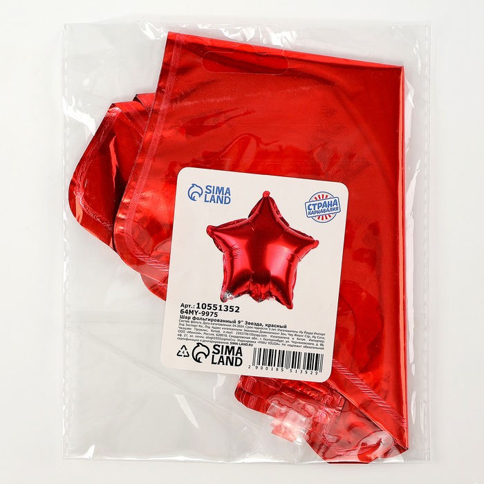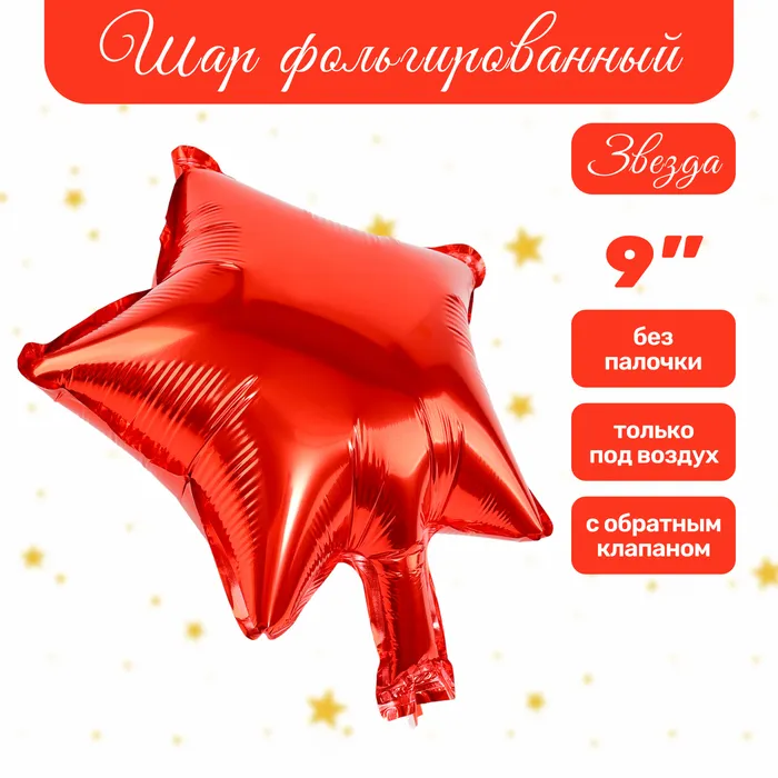 Воздушный шар фольгированный 9" «Звезда», для палочки, красный — Характеристики