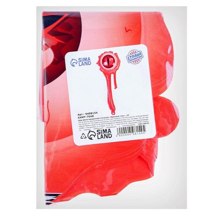Воздушный шар фольгированный-стучалка 16" «Красный глаз», под воздух — Характеристики