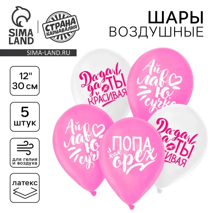 Воздушный шар латексный 12" "Хвалебные для подруги", 5 шт. — Характеристики