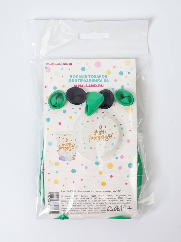 Воздушный шар латексный 12" «Настоящему мужчине», 5 шт. — Характеристики