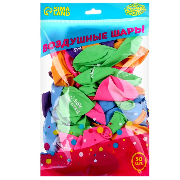 Воздушный шар латексный 12" «С днём рождения», минимализм, 50 шт. — Характеристики