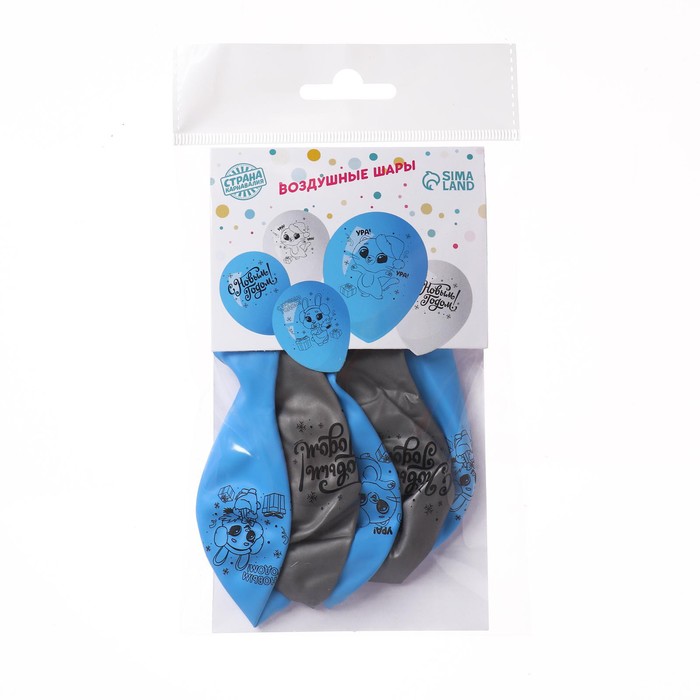 Воздушный шар латексный 12" «С Новым годом», голубой, серебро, 5 шт — Характеристики