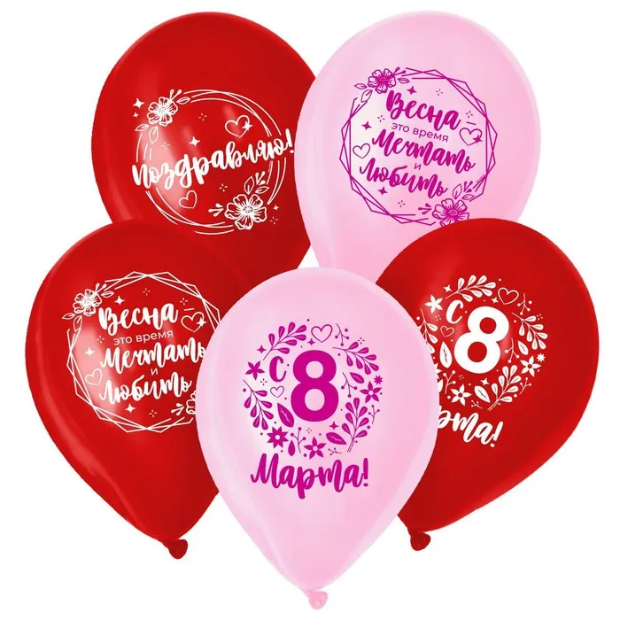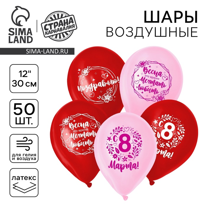 Воздушный шар латексный 12" «Весенний день, 8 марта», 50 шт. — Характеристики