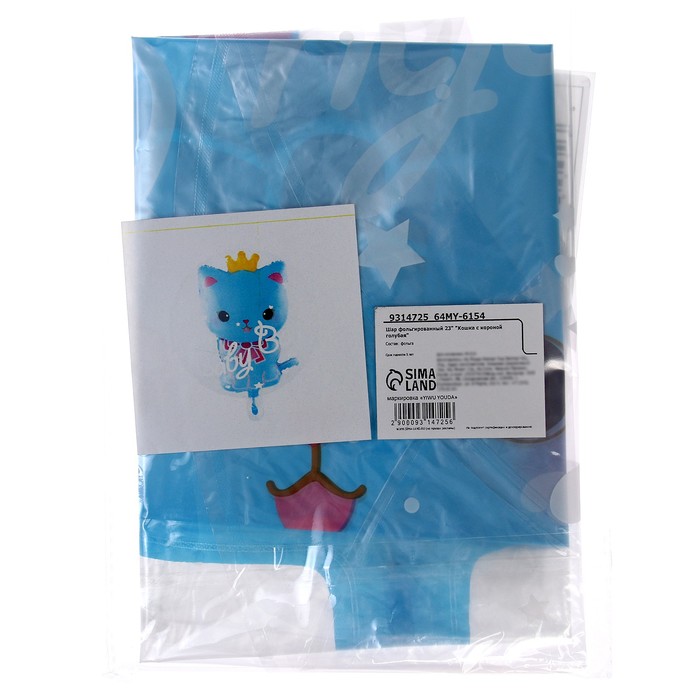 Воздушный шар полимерный 23" «Кошка», шар в шаре, голубой — Характеристики