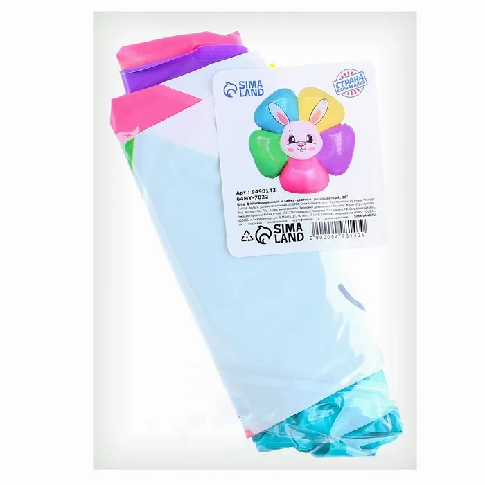 Воздушный шар полимерный 38" «Зайка-цветок», разноцветный — Характеристики
