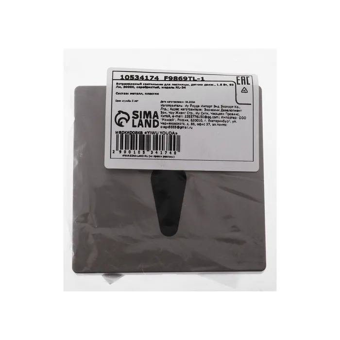 Встраиваемый светильник для лестницы NL-34, с датчиком движения, 1.5 Вт, 60 Лм, 3000К, 86×86 мм, серебристый, свечение тёплое белое — Характеристики
