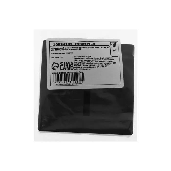 Встраиваемый светильник для лестницы NL-37, с датчиком движения, 1.5 Вт, 60 Лм, 6500К, 86×86 мм, чёрный, свечение холодное белое — Характеристики