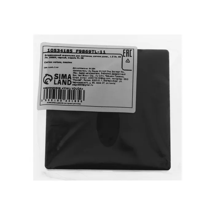Встраиваемый светильник для лестницы NL-38, с датчиком движения, 1.5 Вт, 60 Лм, 3000К, 86×86 мм, чёрный, свечение тёплое белое — Характеристики