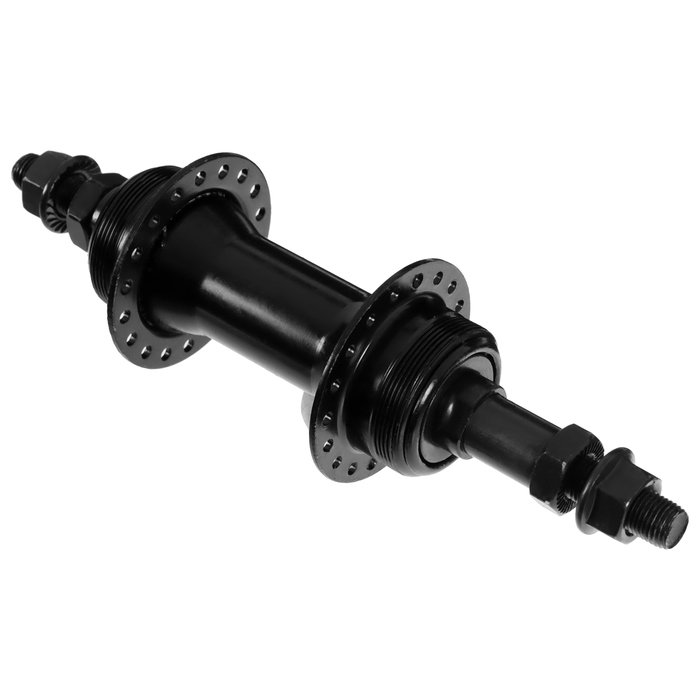 Втулка предназначена для многоскоростных велосипедов. Изделие выполнено из стали, имеет длину оси 109 мм и насыпные подшипники. Втулка совместима с дисковой тормозной системой и подойдёт для колёс с 32 спицами.